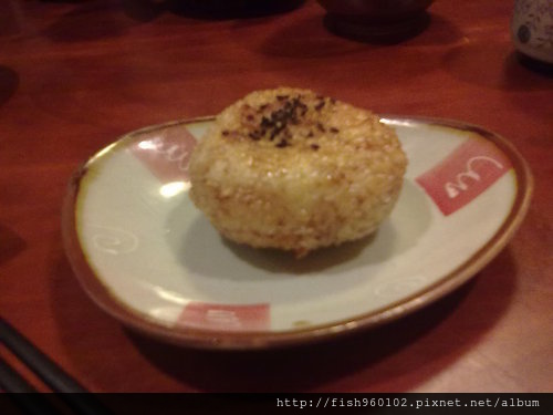 小小魚嗑完一整顆烤飯糰~~